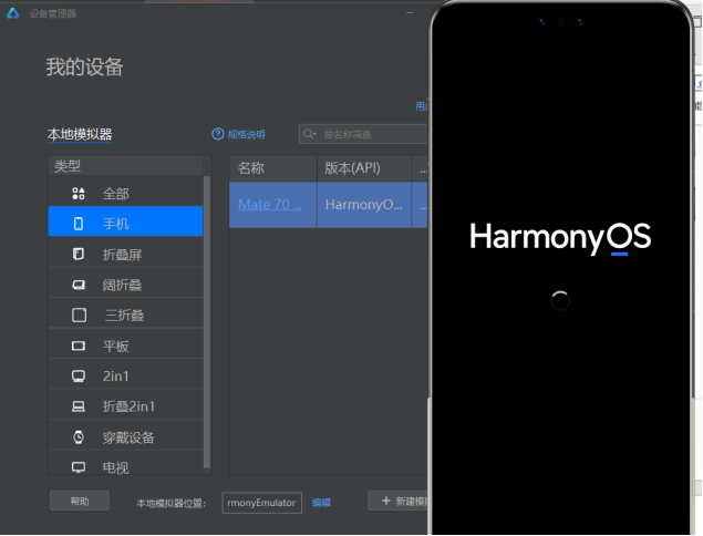 - 设置环境变量DEVECO_EMULATOR_HOME=E:\HarmonyEmulator
