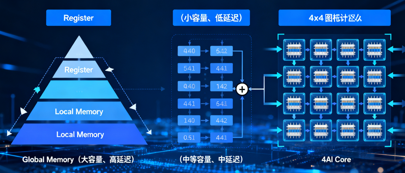 本地内存(Local Memory):每个AI Core独有的中间存储,容量有限但带宽更高。