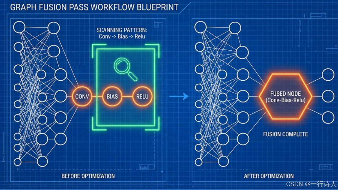 注:实际的 Scope Pass 通常基于 Scope(如 Bert/Layer1/Attention/...)进行匹配。如果只是纯拓扑匹配,CANN 还提供了 GraphFusionPass。为了简化理解,这里展示概念逻辑。