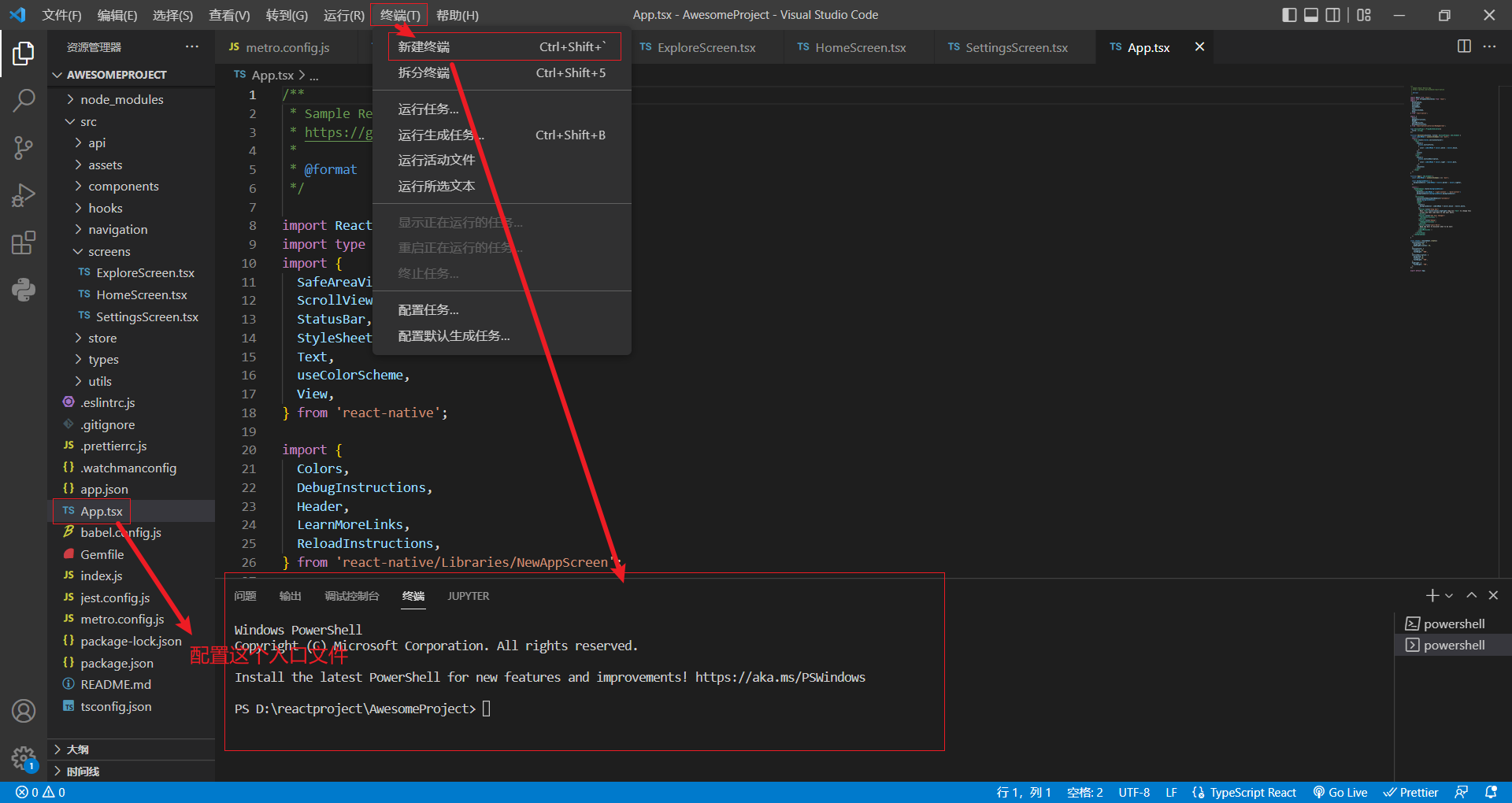 更改src/screens文件夹下的"ExploreScreen.tsx"文件: