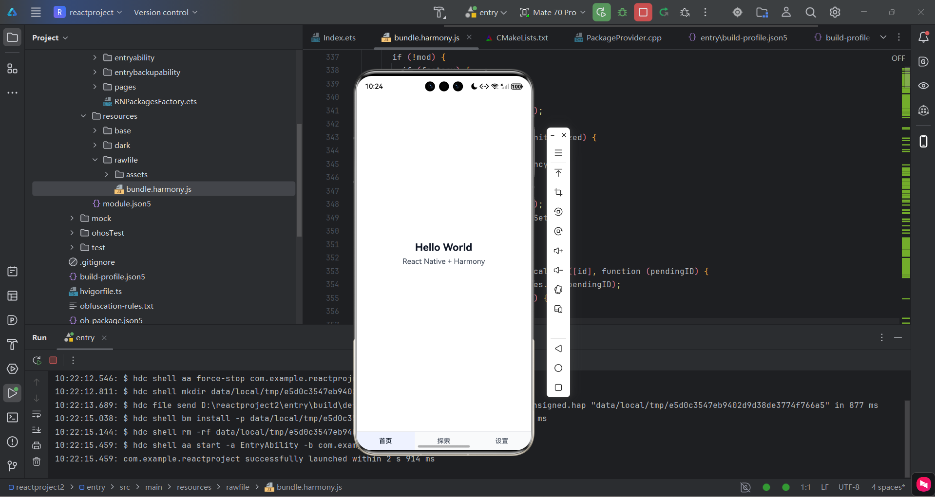完成上述步骤后,同样在终端输入"npm run dev"编译,将得到的"bundle.harmony.js"文件,覆盖DevEco Studio之前的文件。