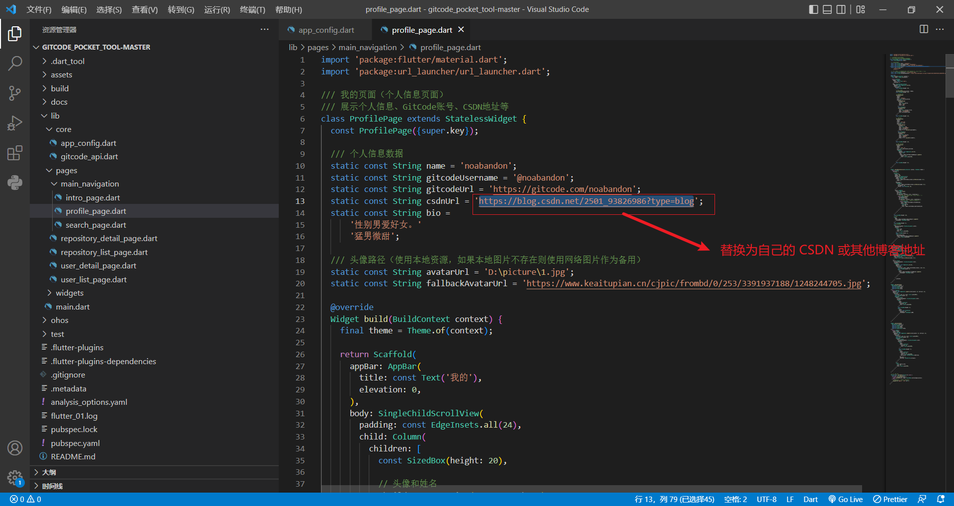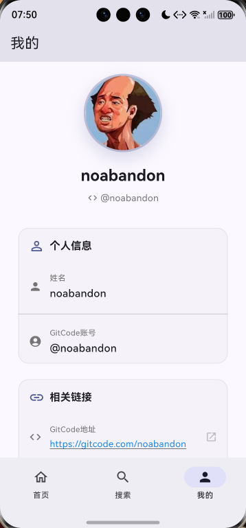 GitCode 地址 :在 lib/pages/main_navigation/profile_page.dart:12 ,将 'https://gitcode.com/noabandon' 替换为自己的 GitCode 主页地址。