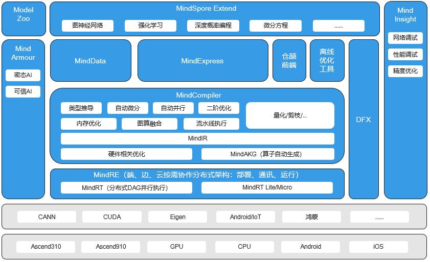 - 全场景适配:支持云端、边缘端多种硬件形态,兼容主流AI框架(TensorFlow、PyTorch、MindSpore)。