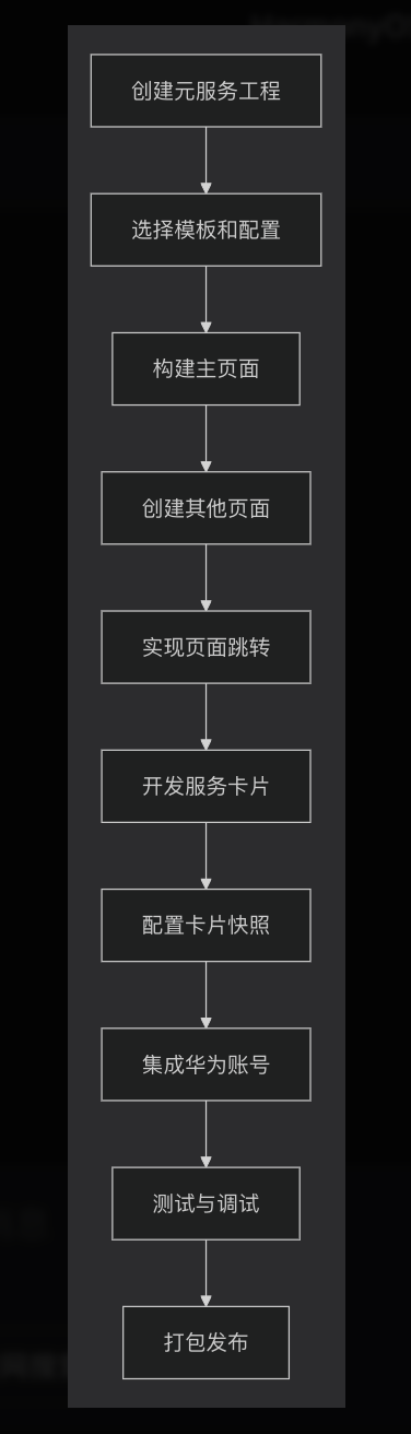 本文详细介绍了元服务工程的创建与开发流程。首先说明了工程创建步骤,包括选择模板、账号登录、APPID配置等关键环节,并解析了工程目录结构。接着讲解了页面构建方法,包括基本结构、布局组件选择和页面间跳转实现。然后介绍了元服务卡片的创建、开发实现和规格适配。最后强调了开发注意事项,包括账号认证要求、开发规范限制和性能优化建议。整个流程涵盖了从工程初始化到页面开发、卡片实现以及发布准备的全套开发指引。