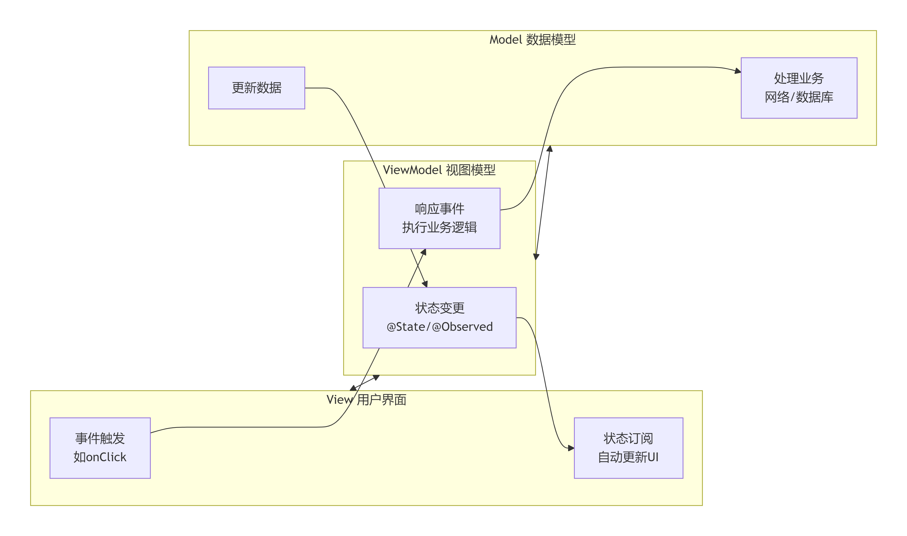 在鸿蒙(HarmonyOS)应用开发中,MVVM架构模式是构建清晰、可维护、高性能应用的核心。本文将系统地剖析MVVM模式在ArkUI框架下的设计哲学、实现方案与最佳实践。
