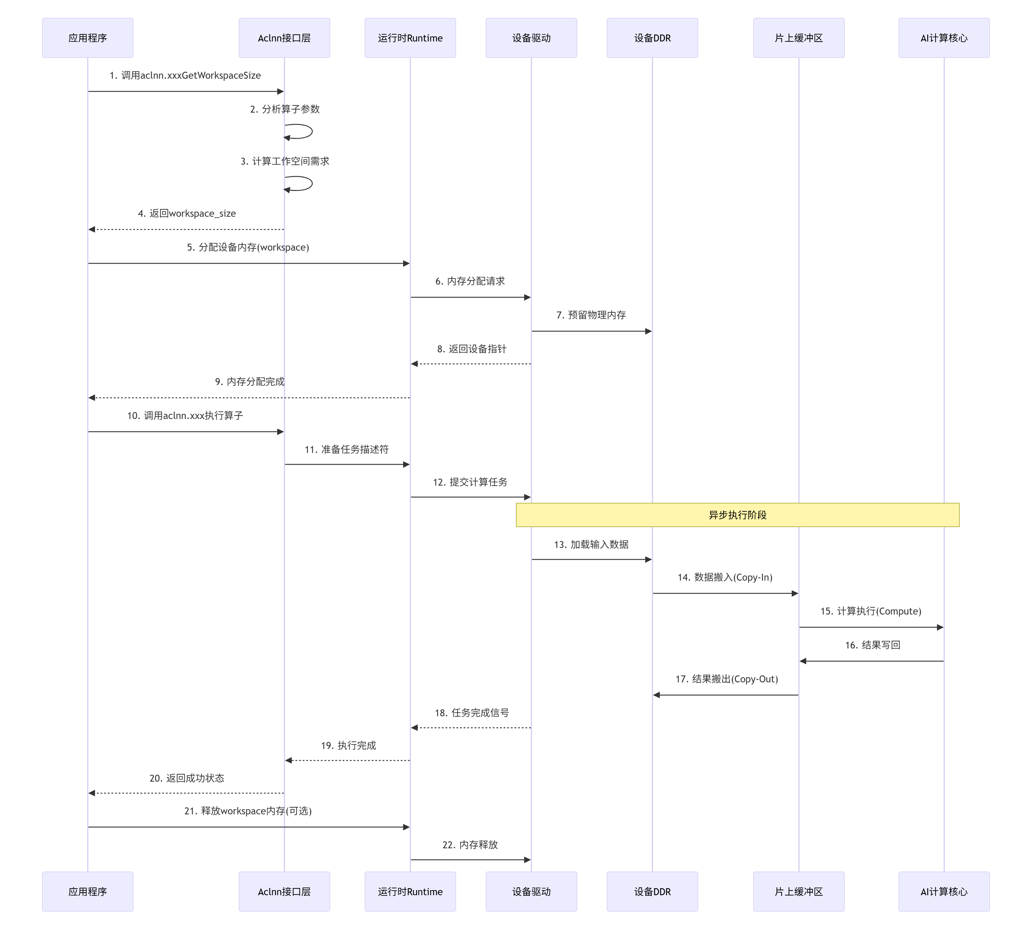 图片中提到的aclnn.xxxGetWorkspaceSize是内存优化的关键。让我们深入其工作原理: