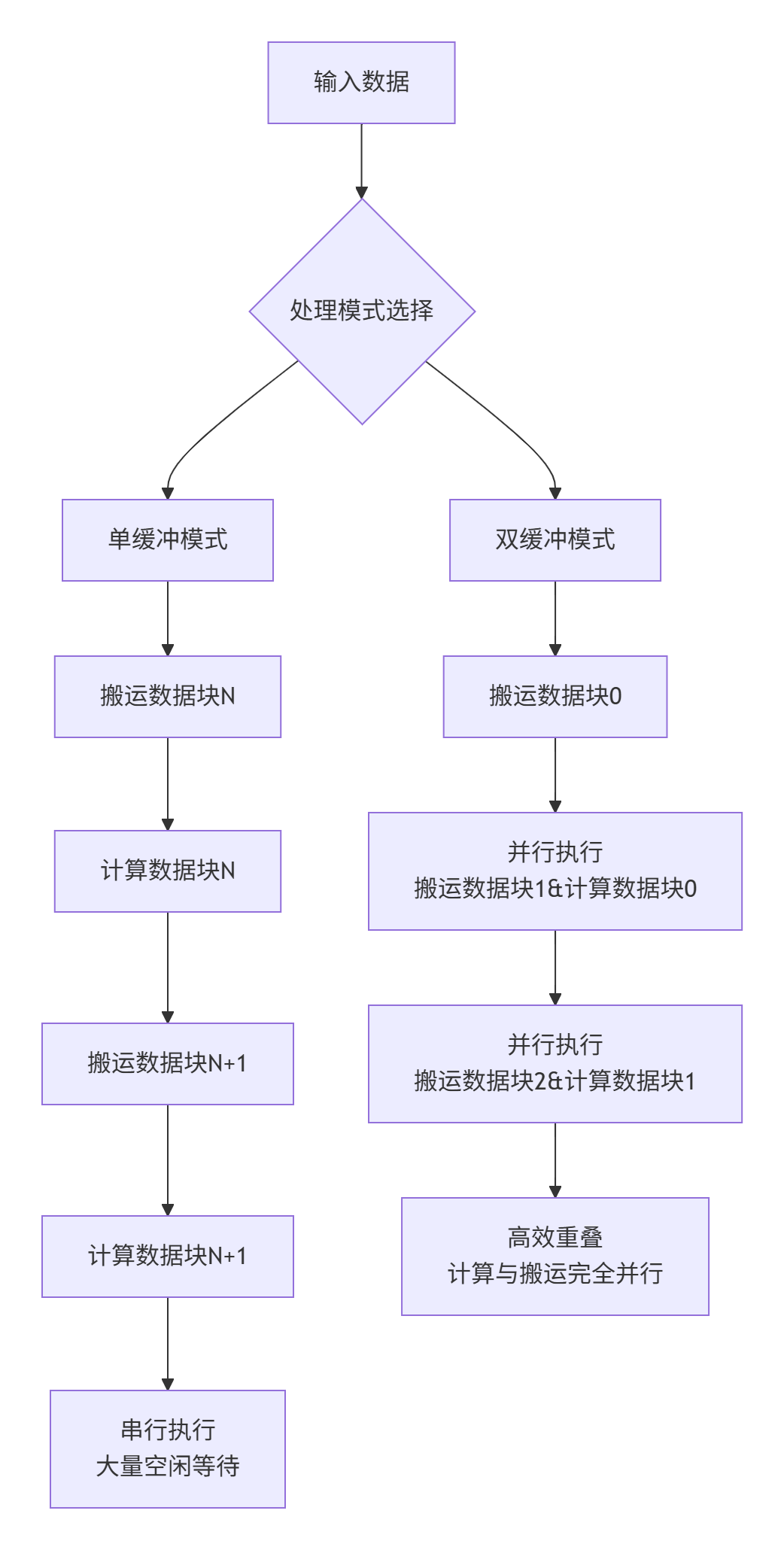 下图展示了单缓冲与双缓冲在执行模式上的本质差异: