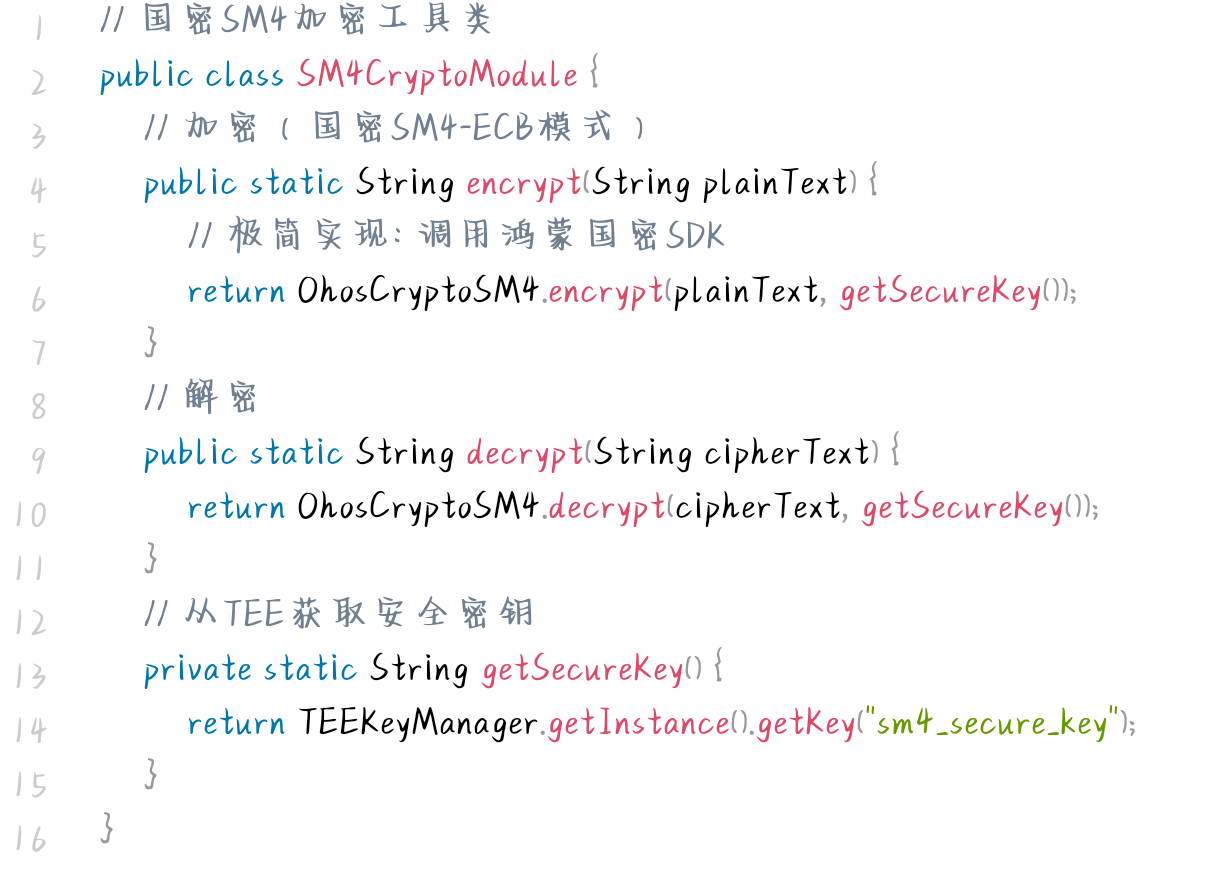 (一)安全能力封装层:国密SM4加密模块(鸿蒙Java)