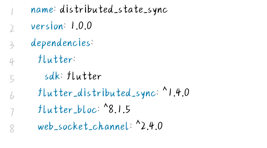 - Flutter:Flutter SDK 3.24.0+、flutter_distributed_sync: ^1.4.0、flutter_bloc: ^8.1.5、web_socket_channel: ^2.4.0;