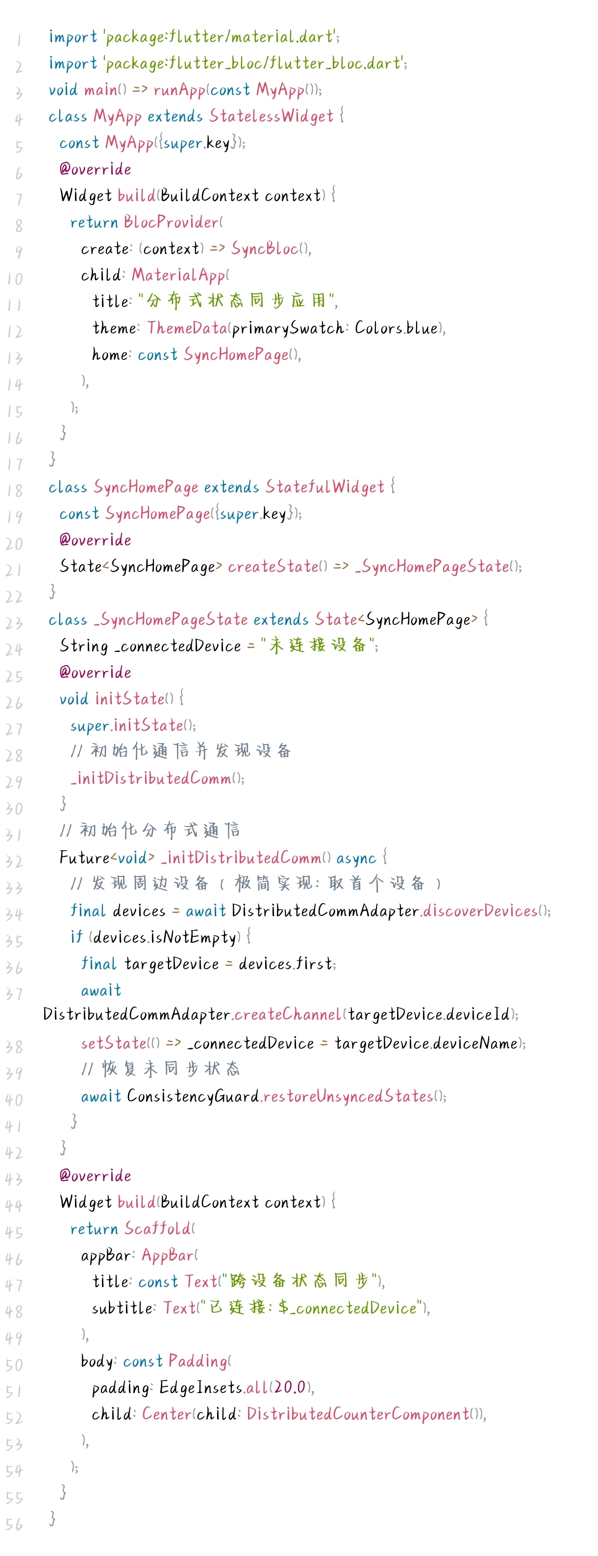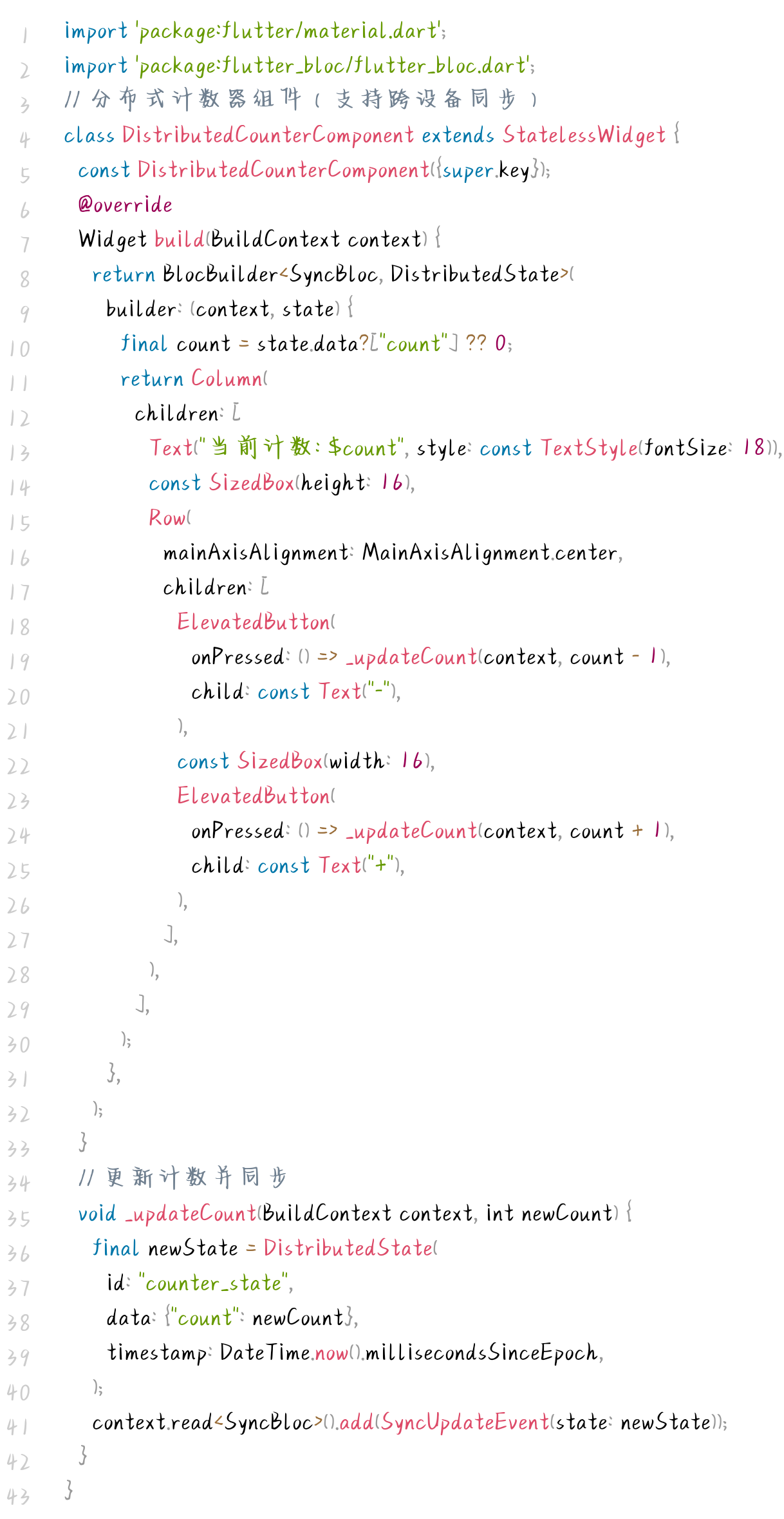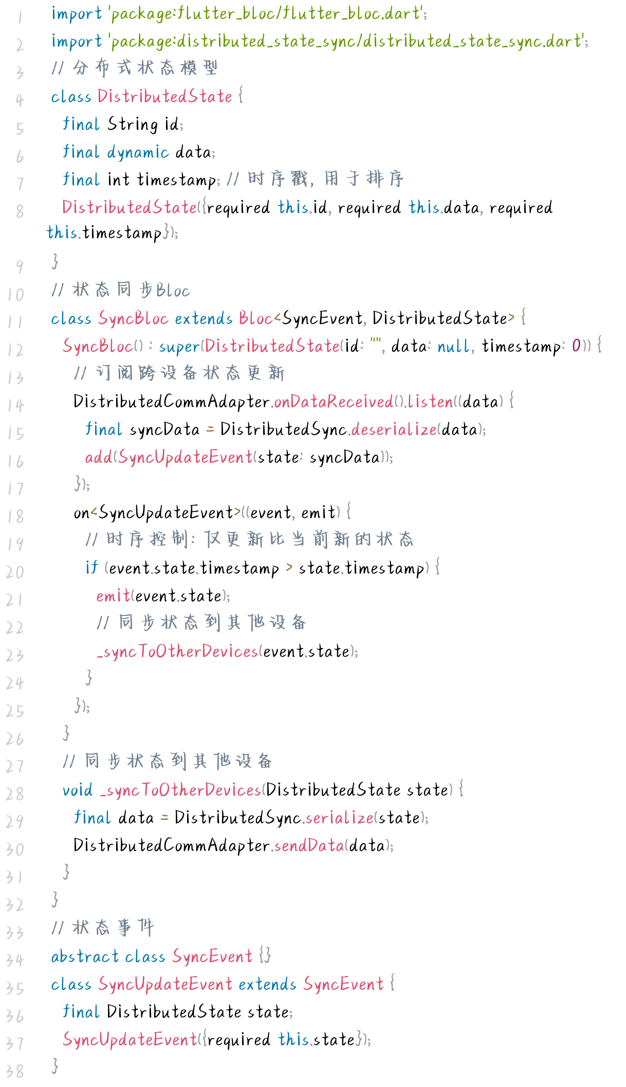 - flutter_distributed_sync:Flutter端分布式状态同步核心库,支持发布-订阅与冲突解决;