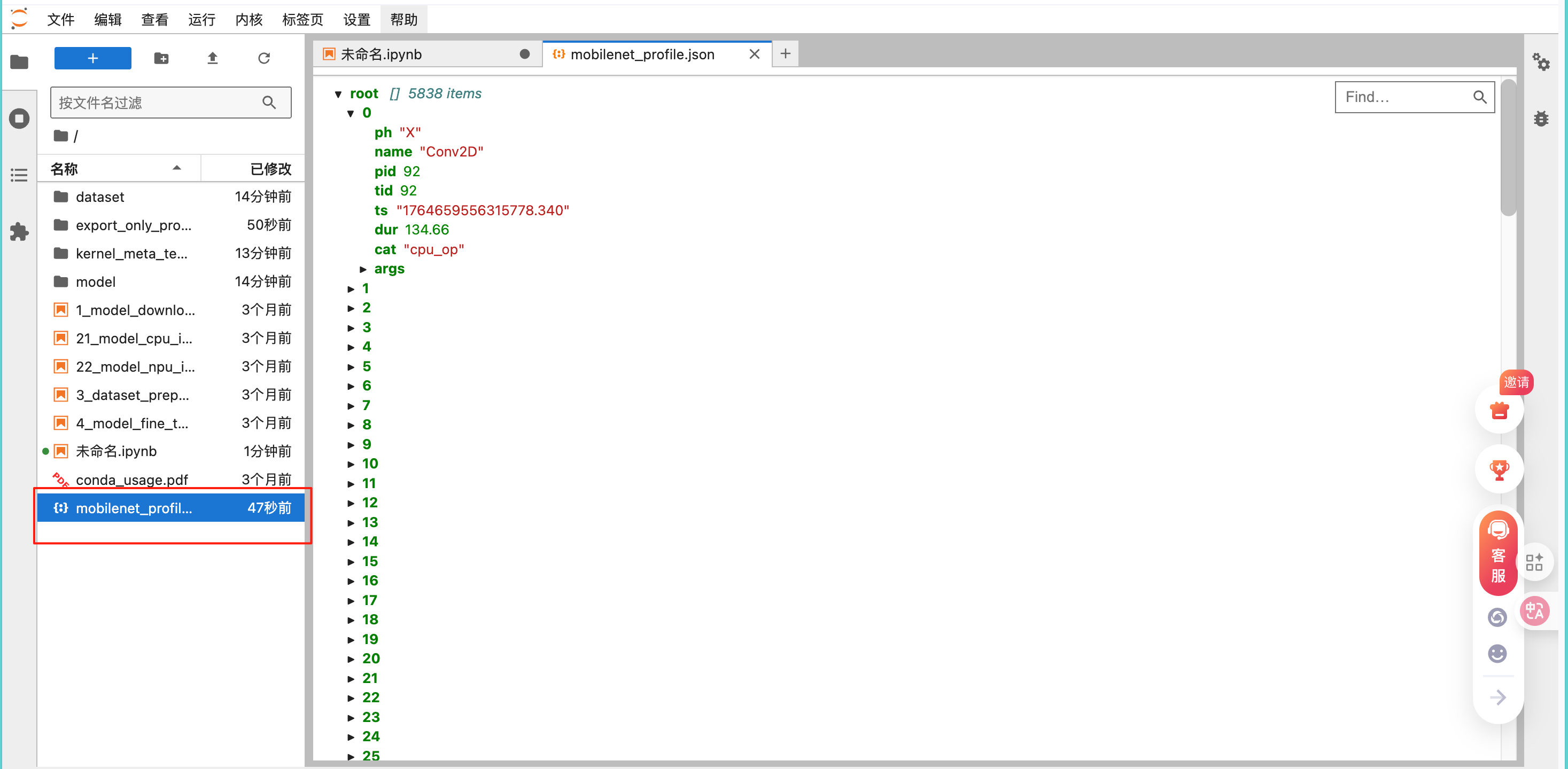 这段代码会生成一个json文件,记录了每个算子的详细执行情况: