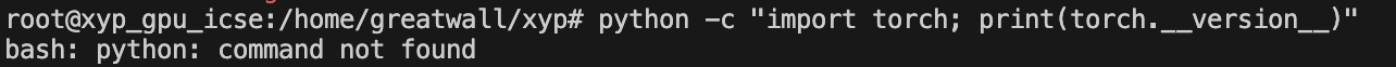 刚开始的指令是:python -c “import torch; print(torch.version)”,会发现抛出错误:bash: python: command not found