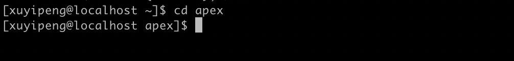 这步会比较慢,等三四分钟左右,然后切换到apex目录:cd apex