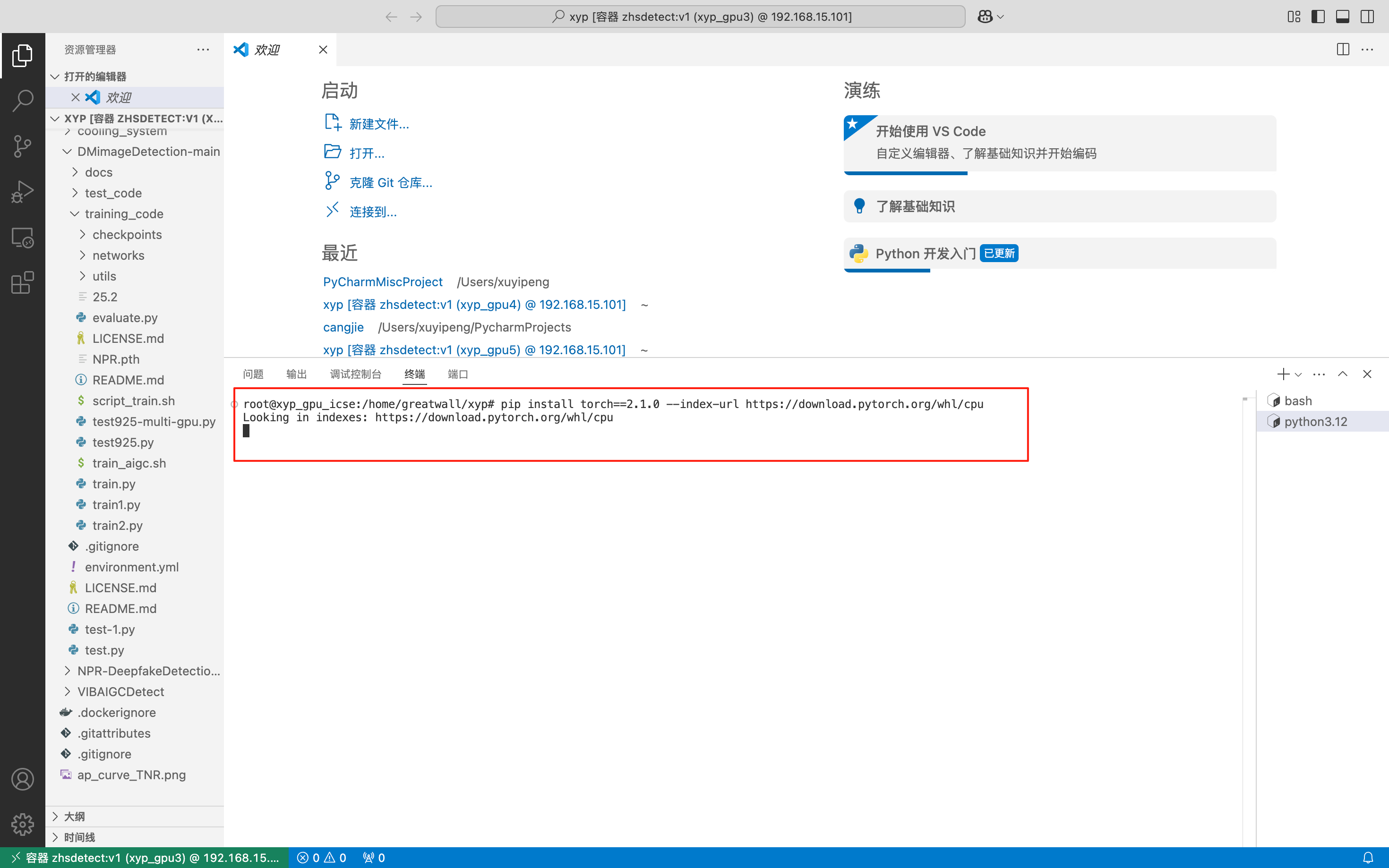 进入容器之后,首先安装torch: