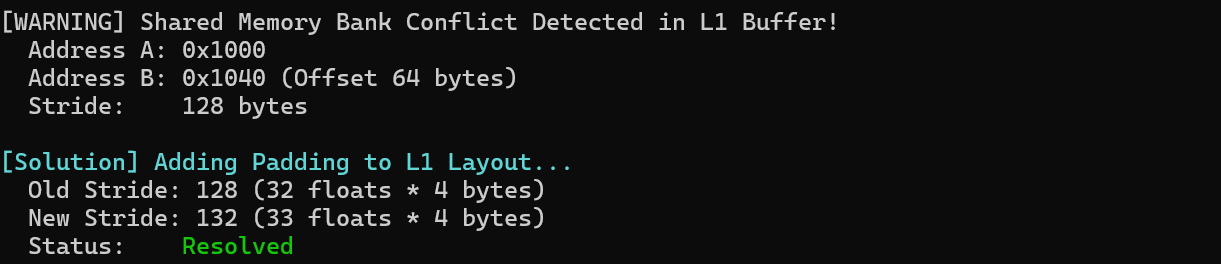 解决:通过 Padding(填充)技术,改变数据的存储布局,错开 Bank 访问。