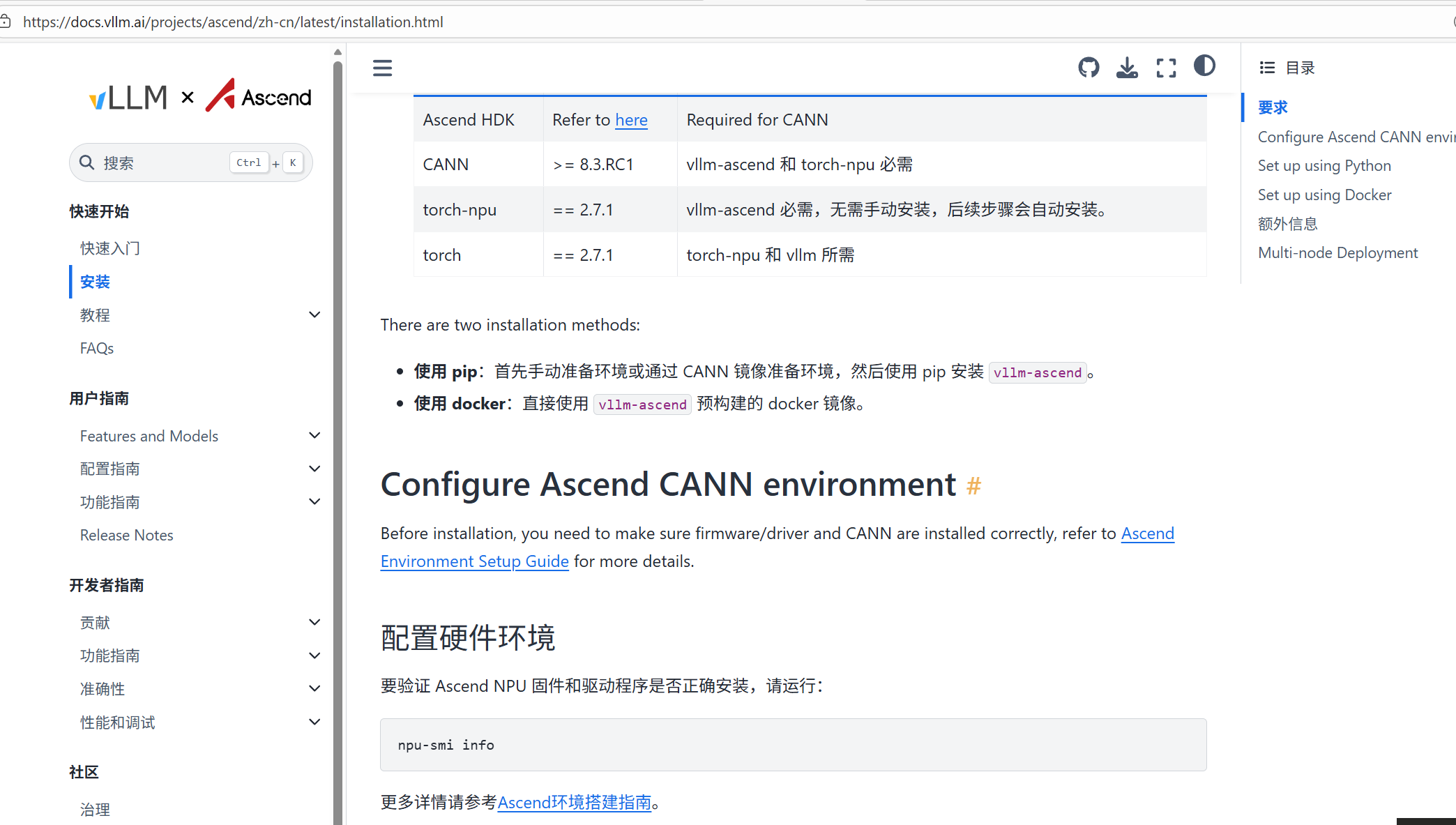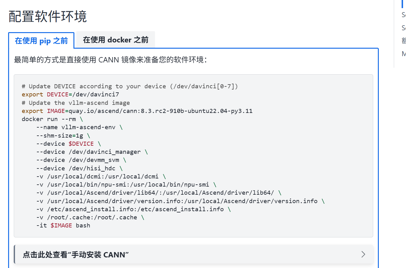 环境准备:CANN 驱动、NPU 状态、Docker 镜像或 Python 环境。