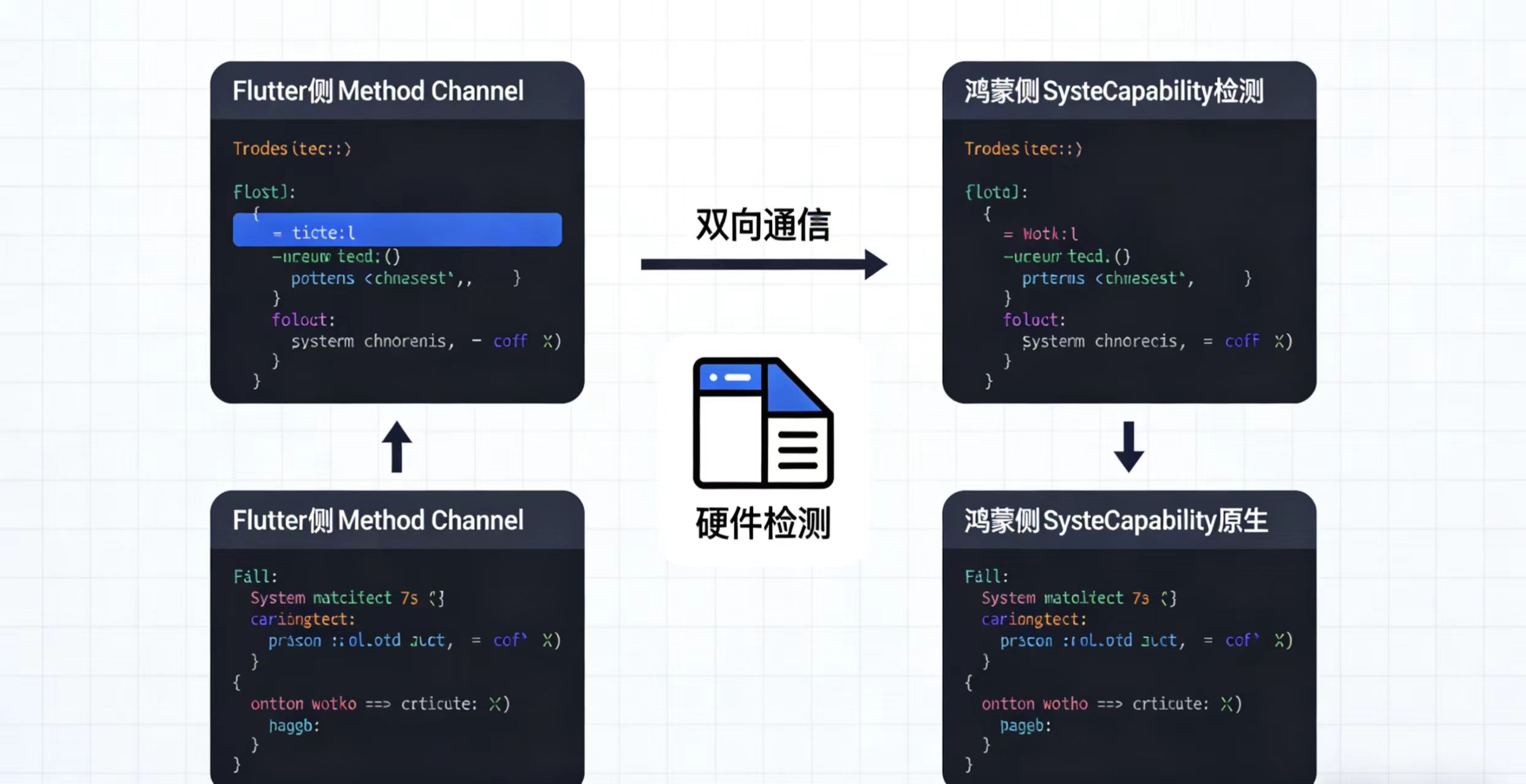 Flutter应用可以通过MethodChannel与鸿蒙原生代码交互,获取硬件支持情况。具体实现步骤如下: