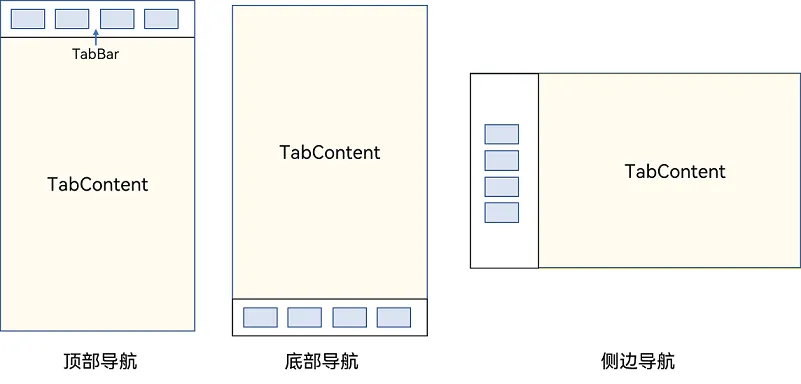 Tabs():外层容器,包裹所有标签页TabContent():每个标签页的内容,需要配合.tabBar()设置标签文字