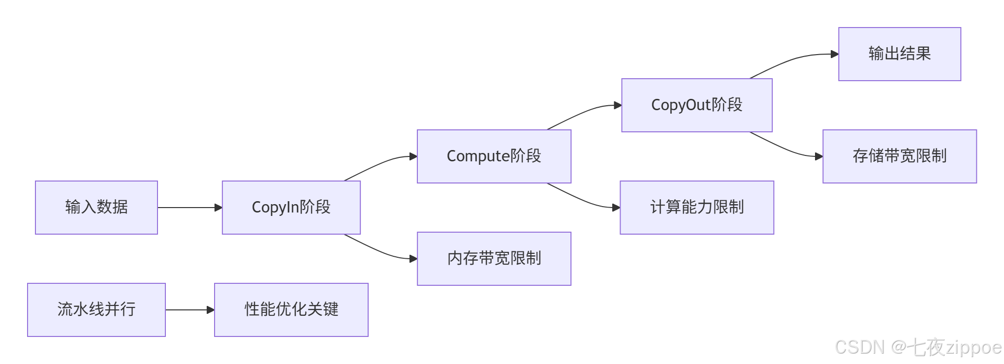Ascend C的核心创新在于三级流水线(3-Stage Pipeline)设计,通过CopyIn、Compute、CopyOut三个阶段重叠数据搬运与计算: