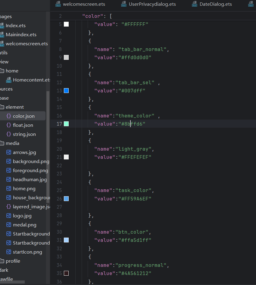 颜色也可以提前想好并放在element中,并用相关代码命名,方便以后开发调用: