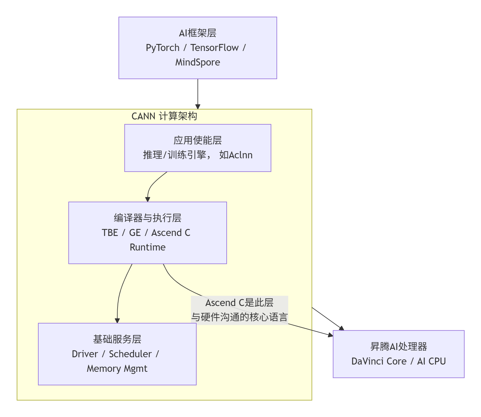 🏗️ 一、 昇腾计算生态:CANN的“三明治”架构与Ascend C的定位
