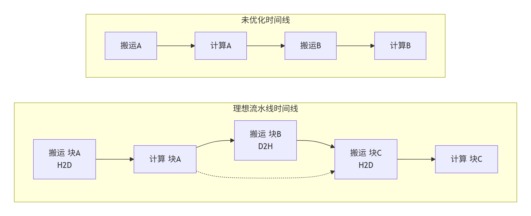 图:流水线优化将顺序执行变为重叠执行,显著缩短总时间