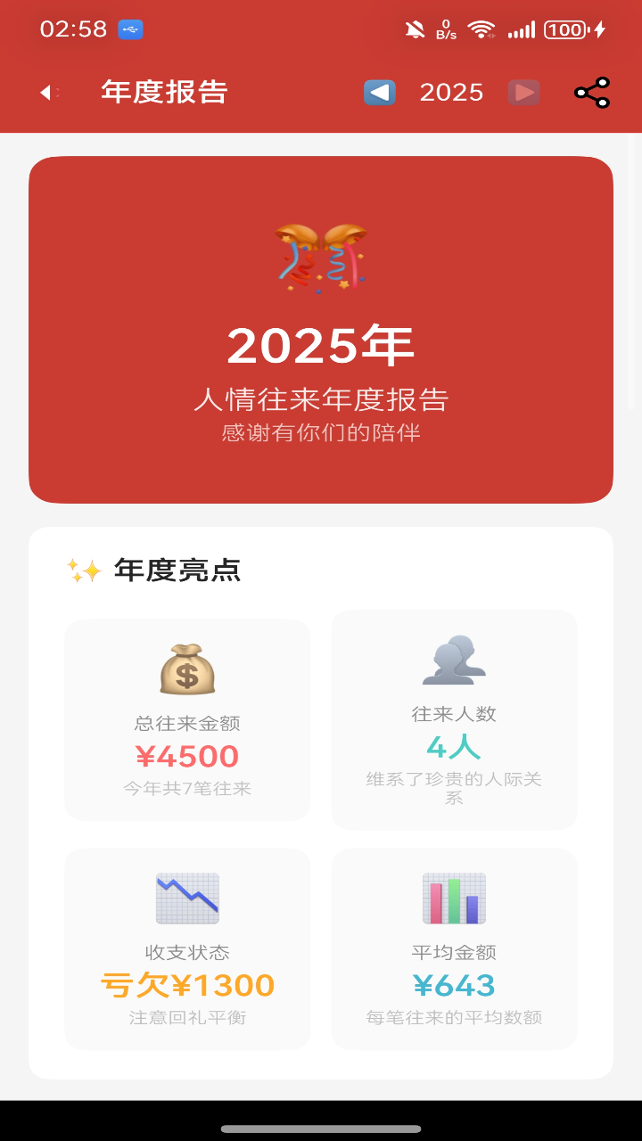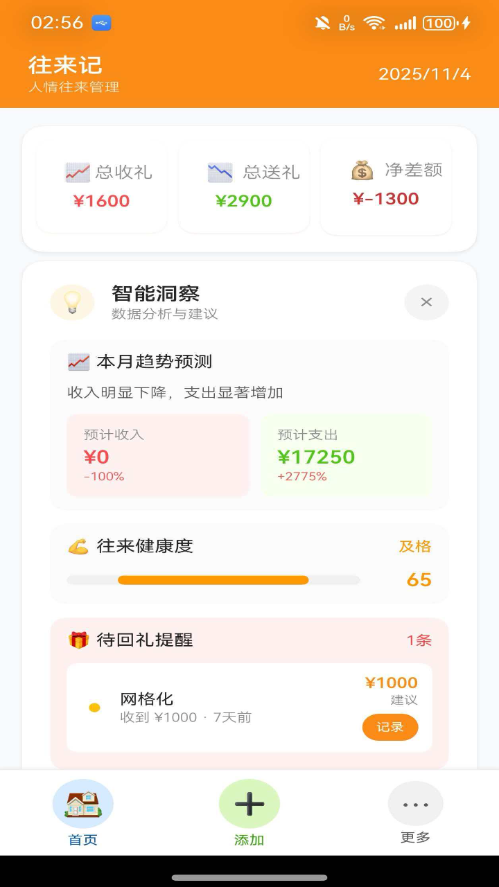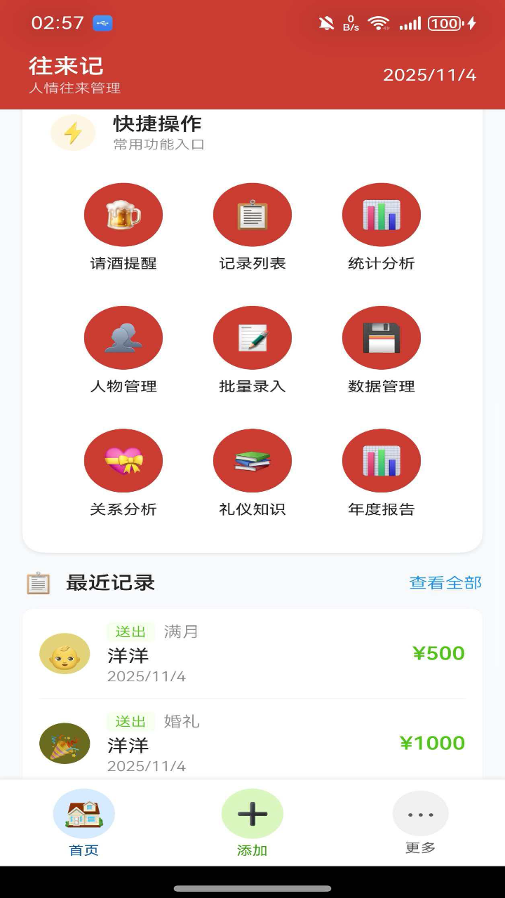 “往来记”不仅仅是一个通用的礼物追踪应用,它特别针对中国式人情往来的特点进行了优化: