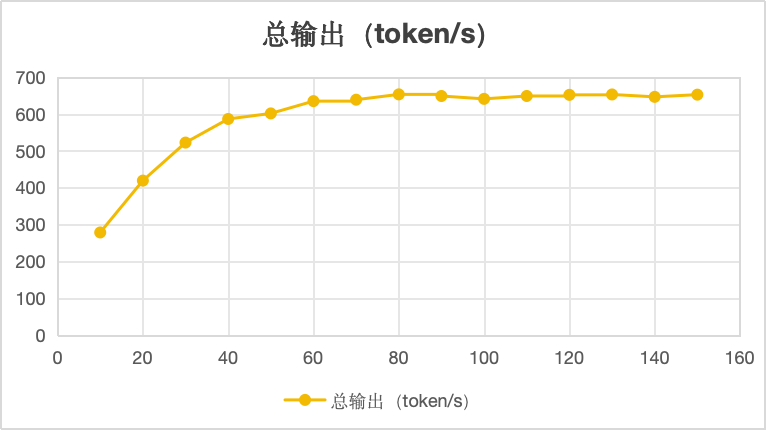 从上图看,并发70-150时,总输出稳定在600-650token以内