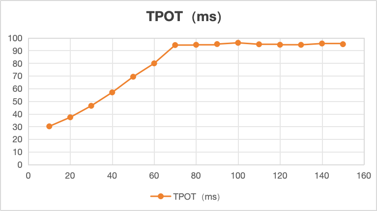 从上图看,并发70-150时,TPOT平均稳定在90-100ms之间