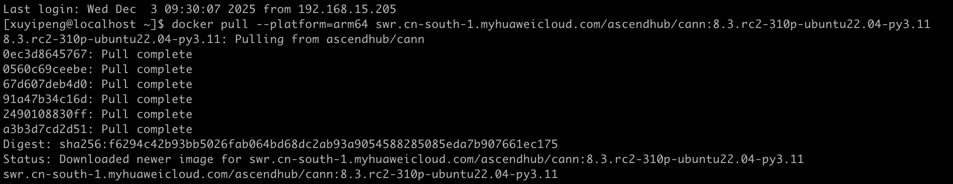 docker pull --platform=arm64 swr.cn-south-1.myhuaweicloud.com/ascendhub/cann:8.3.rc2-310p-ubuntu22.04-py3.11
