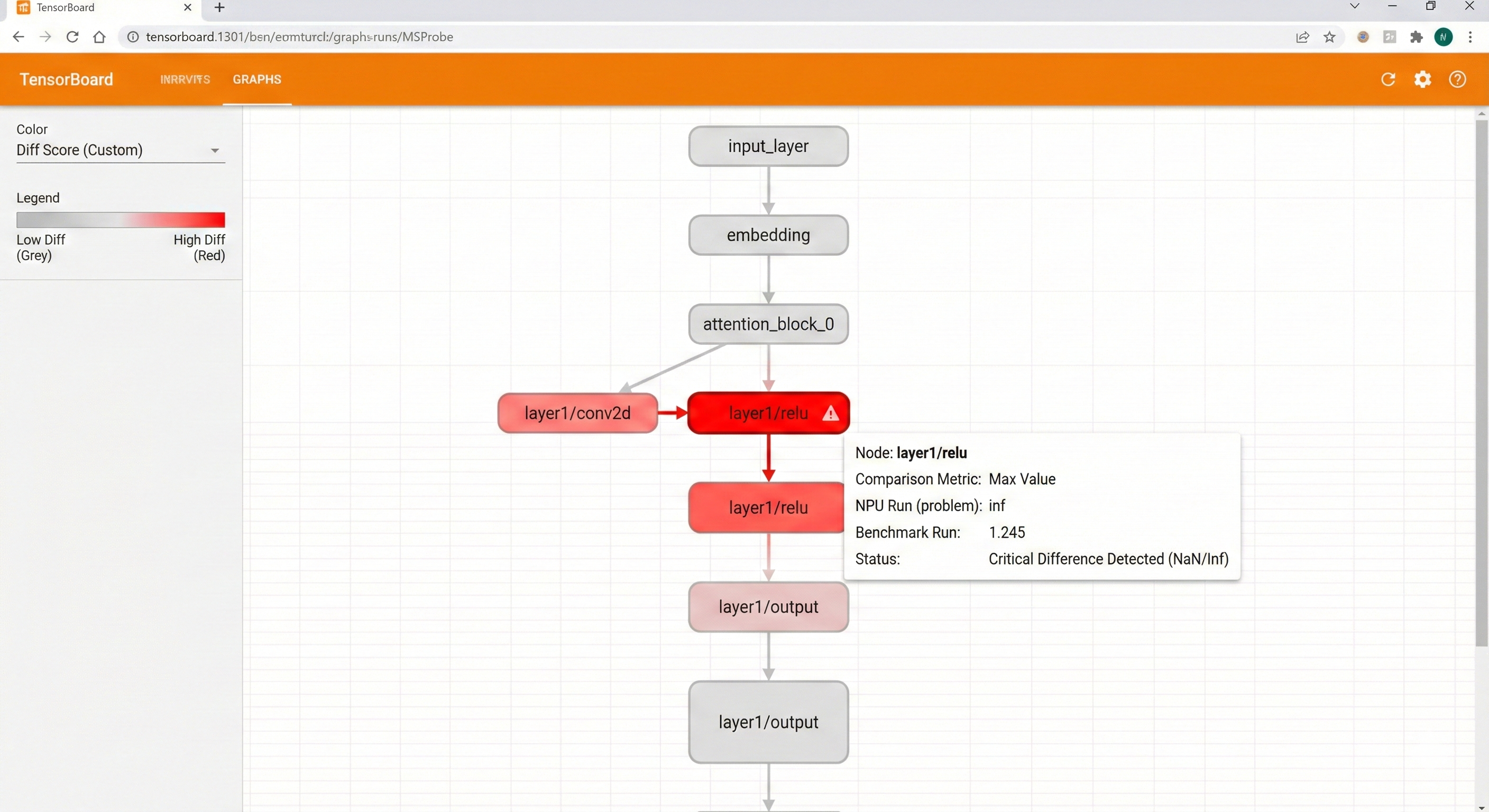 TensorBoard视图如下,其中高亮了conv层差异,帮我快速定位