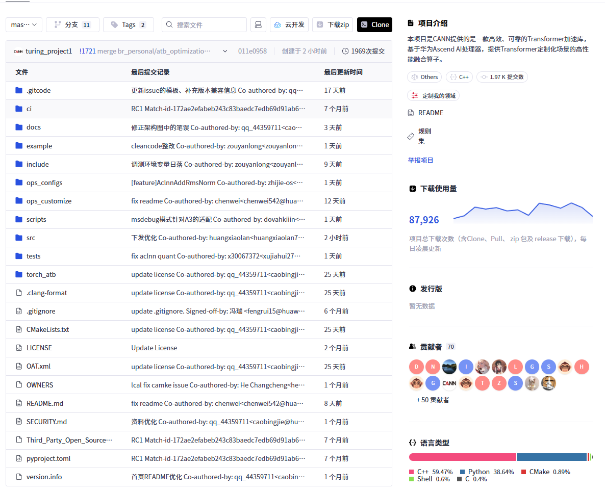 描述: “基于华为 Ascend AI 处理器,提供 Transformer 定制化场景的高性能融合算子。”