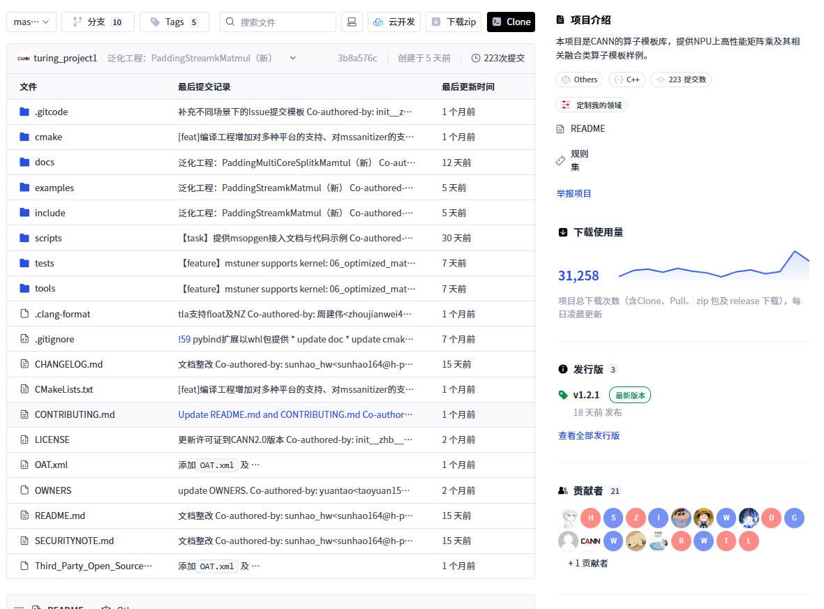 描述: “CANN 的算子模板库,提供 NPU 上高性能矩阵乘及其相关融合类算子模板样例。”
