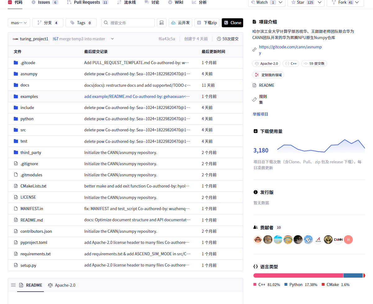 该项目极大降低了 科学计算与原型开发 在 NPU 上的门槛,是 Python 开发者友好型入口。