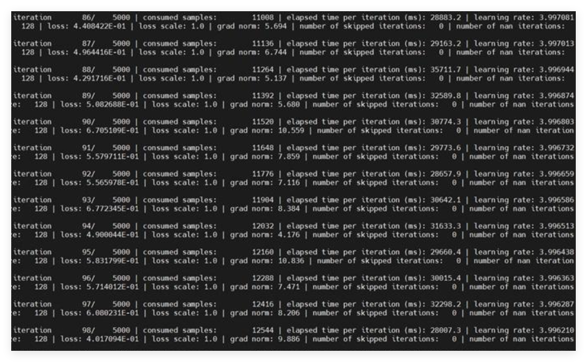 --log-interval 1 \ # 日志打印间隔,每1步打印一次
