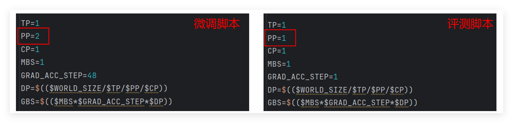 - sh文件:配置模型加载路径,为转换后的权重路径(支持PP切分)。