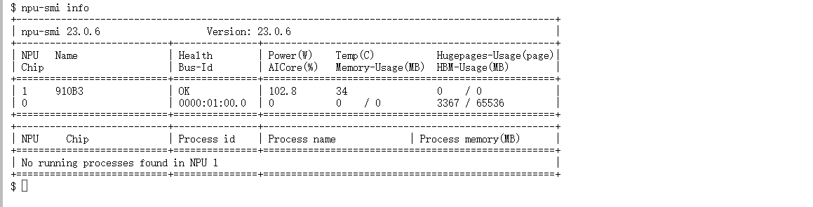 - HBM-Usage: 初始状态下显存占用应极低。如果你的卡是 64GB 版本,这里应显示 Total 容量约为 65536 MB。