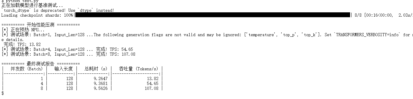 - 部署体验: 极佳。得益于 Transformers 和 torch_npu 的适配,代码几乎零修改。