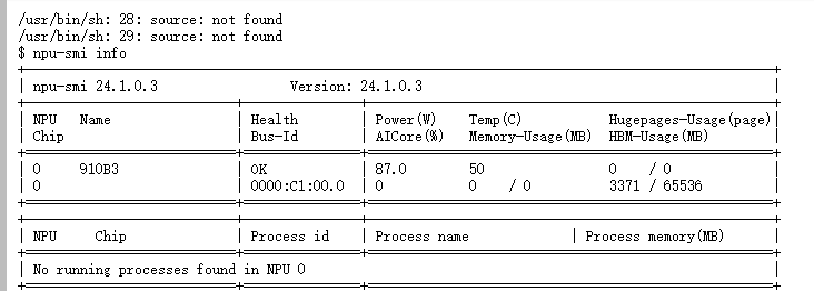 本次测试运行在昇腾 Atlas 800T 。我们首先使用 npu-smi info 确认 NPU 状态: