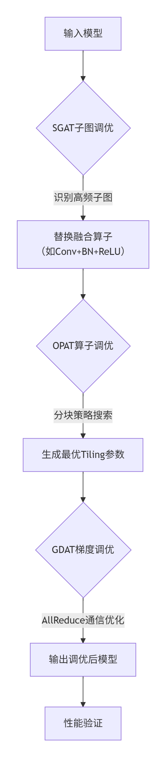 - OPAT算子调优:流程如图6所示,通过算子融合与切分生成最优算子策略。
