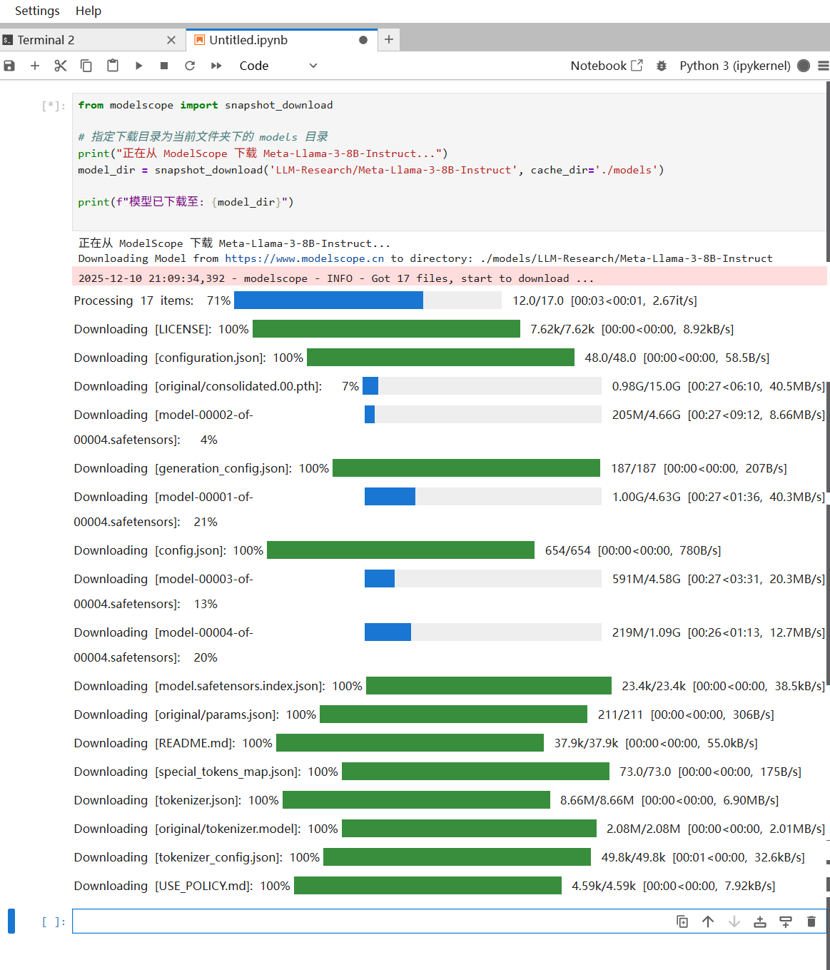 print("正在从 ModelScope 下载 Meta-Llama-3-8B-Instruct...")