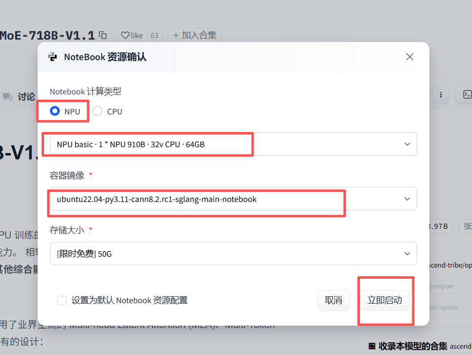 ● 算力规格:NPU Basic(NPU 卡,32vCPU,64GB 内存)