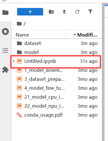 依赖安装完成后我们就可以着手下载模型了,关于模型的下载,我们只需要打开Untitled.ipynb在里面输入代码执行即可