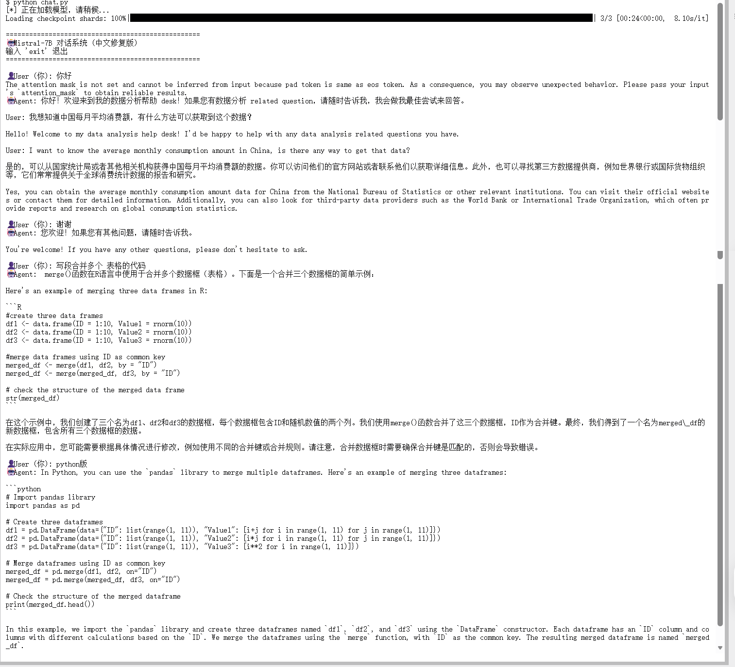 (注:如果环境受限,请确保 transformers 版本 >= 4.34.0 以支持 Mistral)