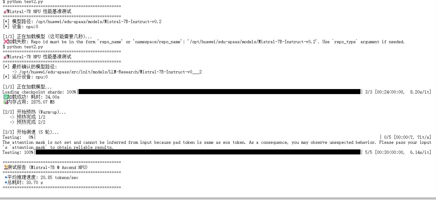 print(f"🏆 测试报告 (Mistral-7B @ Ascend NPU)")