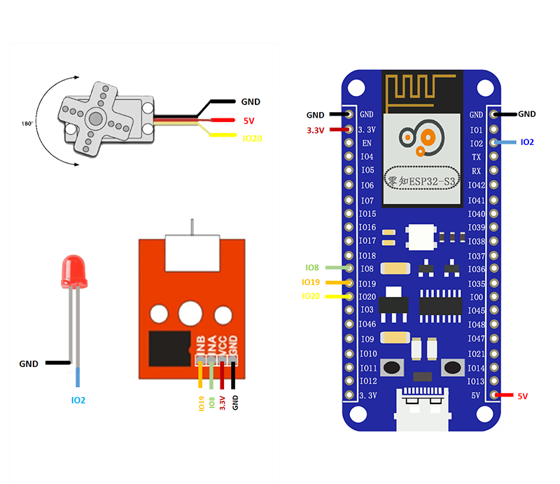 | IO20 | SG90舵机PMW引脚 | 输入舵机角度 | GPIO_NUM_20 |