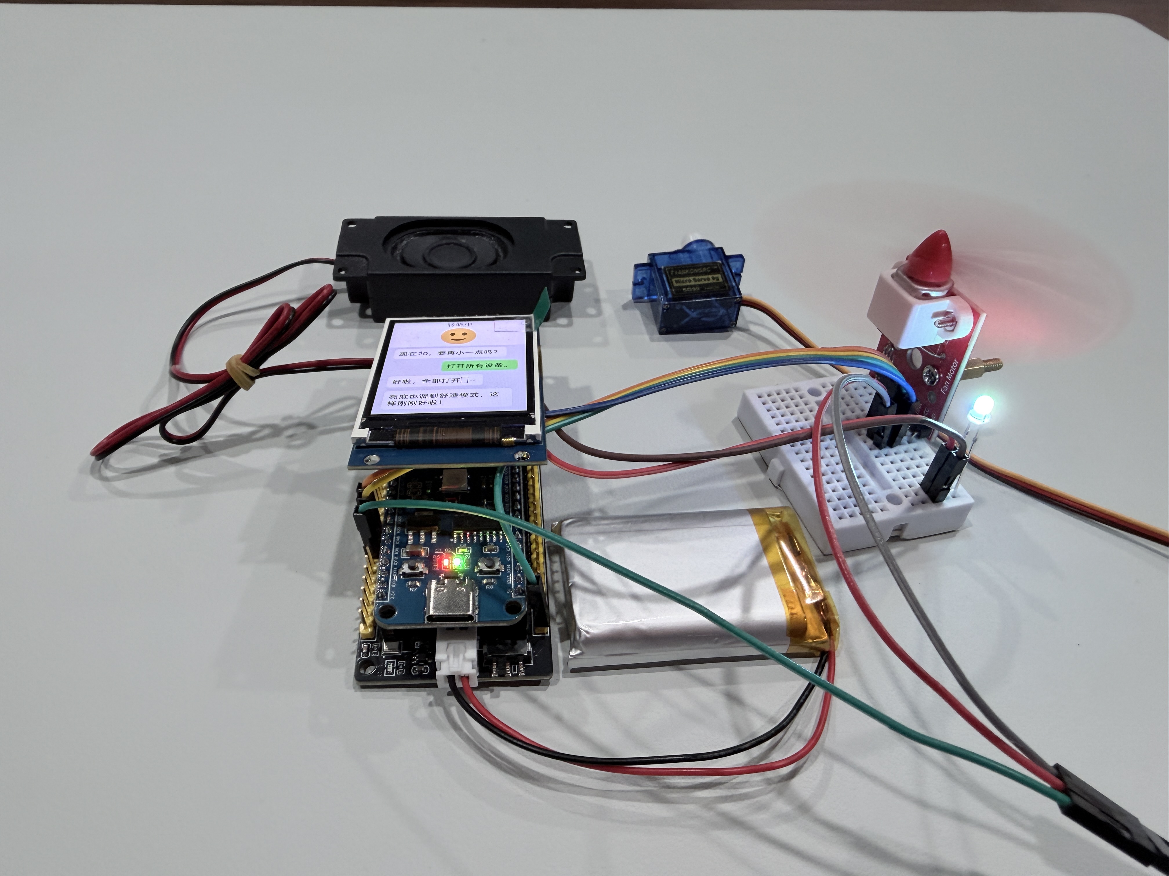 项目基于零知ESP32-S3部署 AI小智 1.0版本,调整了界面的布局,同时添加了对LED灯、L9110风扇传感器模块的开关,还有舵机SG90的开关以及控制舵机转动角度的功能