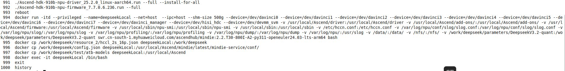 docker cp /work/deepseek/config.json deepseekLocal:/usr/local/Ascend/mindie/latest/mindie-service/conf/