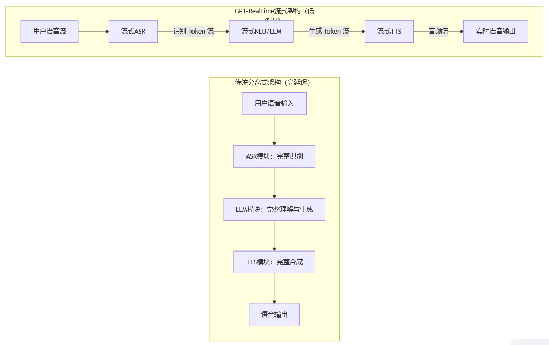 下面是一个简化的Mermaid流程图,展示了传统架构与基于GPT-Realtime的流式架构在处理流程上的差异。