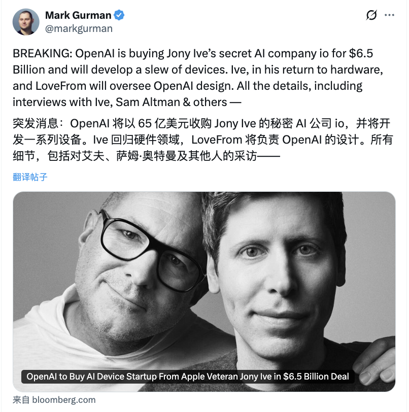 当时OpenAI以约65亿美元的价格,收购了Jony Ive创办的硬件公司io,也是OpenAI史上最大收购案,也由此正式把做硬件这件事摆上了桌面: